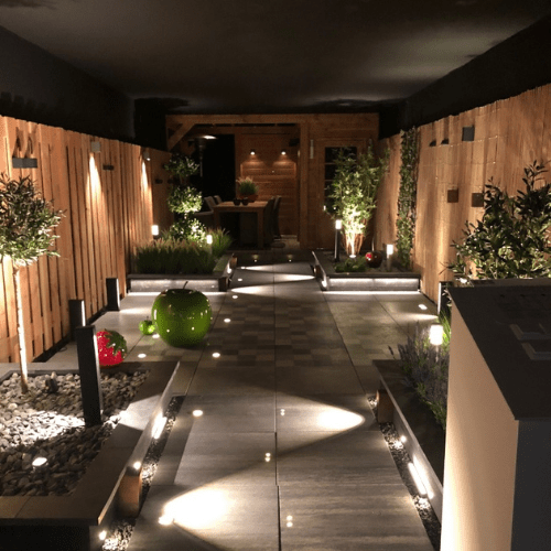 Door verlichting komt een tuin tot leven. Dit effect proberen we na te bootsen in een avondtuin. Dit is een donker gecreëerde ruimte waar onze armaturen worden gepresenteerd in een realistische setting. Zo krijgt de consument een beeld van de verschillende mogelijkheden en hoe de tuin er werkelijk uit kan komen te zien. Onze armaturen zijn stuk voor stuk verschillend van design, maar hebben ook verschillende functies/lichtspecificaties. De kracht van een avondtuin is om die verschillen goed in beeld te brengen.
