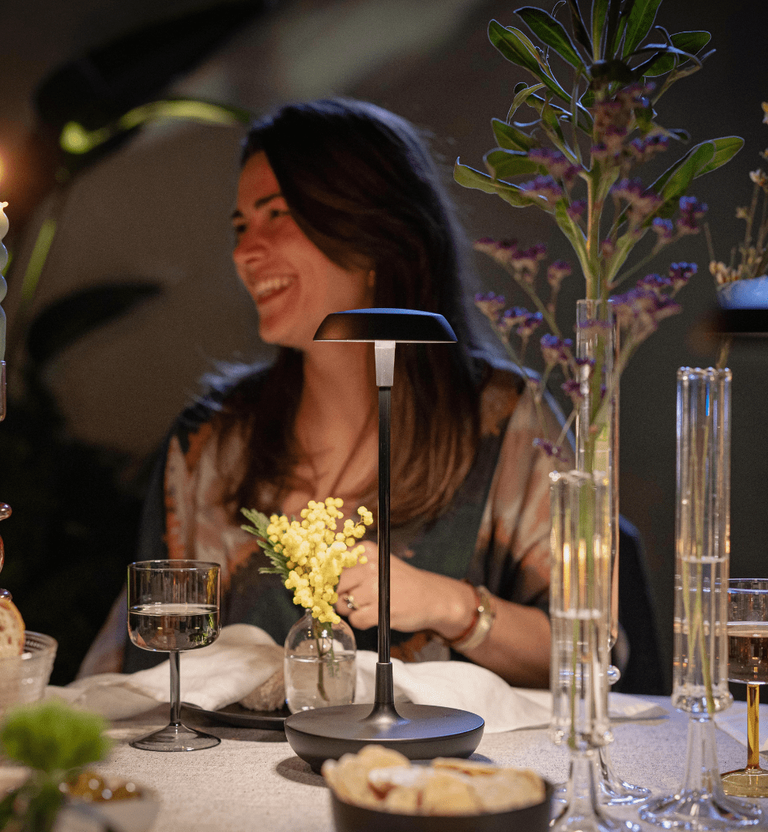 Die Natur ist magisch. Sie verzaubert uns. Die warmen Sonnenstrahlen, die unsere Haut streicheln, die frische Luft, die uns umgibt, die Schönheit, die unsere Augen zum Strahlen bringt. Mit SWAY TABLE können Sie diese Magie auf jedem Tisch spüren. Das flexible Gestell bewegt sich sanft im Rhythmus des Windes; seine abgerundeten Formen ahmen das Organische des Außenbereichs nach. Und mit dem natürlichen warm-weißen Licht wird jeder Moment unvergesslich.