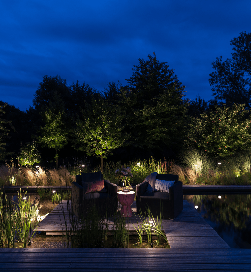 Die Lichtquelle von SWAY erzeugt ein einzigartiges, rundum leuchtendes, atmosphärisches und diffuses Lichtbild, das zusammen mit dem flexiblen Ständer in völliger Harmonie mit der Natur steht. Die Kombination von (mehreren) SWAY- und MINI SWAY-Leuchten erzeugt einen "schwebenden" Lichteffekt, der noch verstärkt wird, wenn der Wind die aufrecht stehenden Leuchten sanft hin und her bewegt.