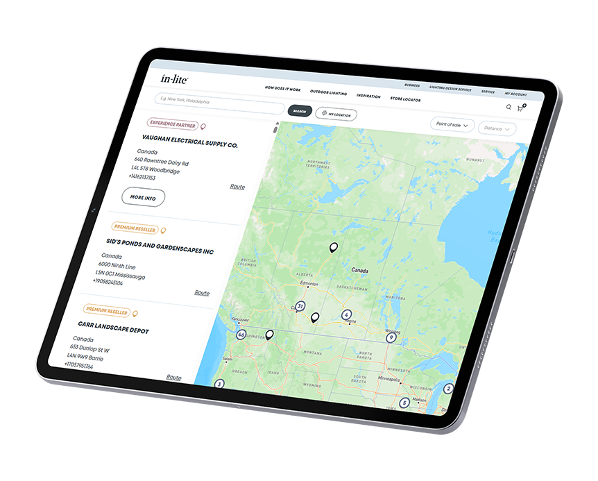 With in-lite outdoor lighting, you can create inviting, functional and safe outdoor spaces taiored to suit your style and preferences. The system operates on low voltage and is easy to expand with additional fixtures, allowing your lighting to grow with your garden step by step. Looking for advice or help choosing the perfect lights? Feel free to get in touch with a dealer near you.