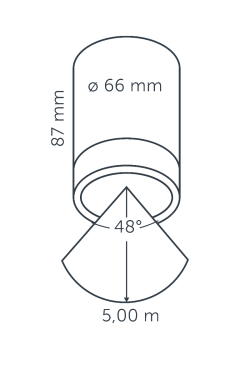 This small but powerful ceiling spot is specially designed for outdoor use, such as in an overhang or pergola. The special KILLFLASH 2 with honeycomb structure ensures that the focused light is less glaring, making this spot pleasant to look at.