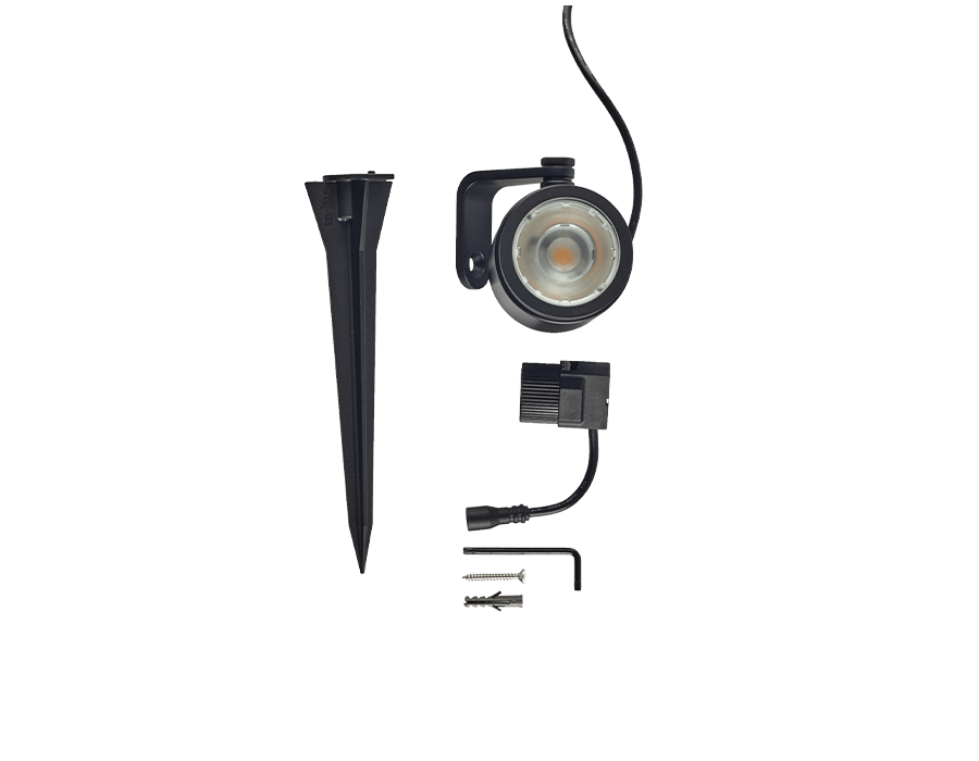 BIG SCOPE is used to illuminate trees up to about 6 meters high with a wide crown. BIG SCOPE is distinguished by a wide beam. Do you have plants under the tree? Then use accessory RISER or BRACE to raise the light source above the plants.