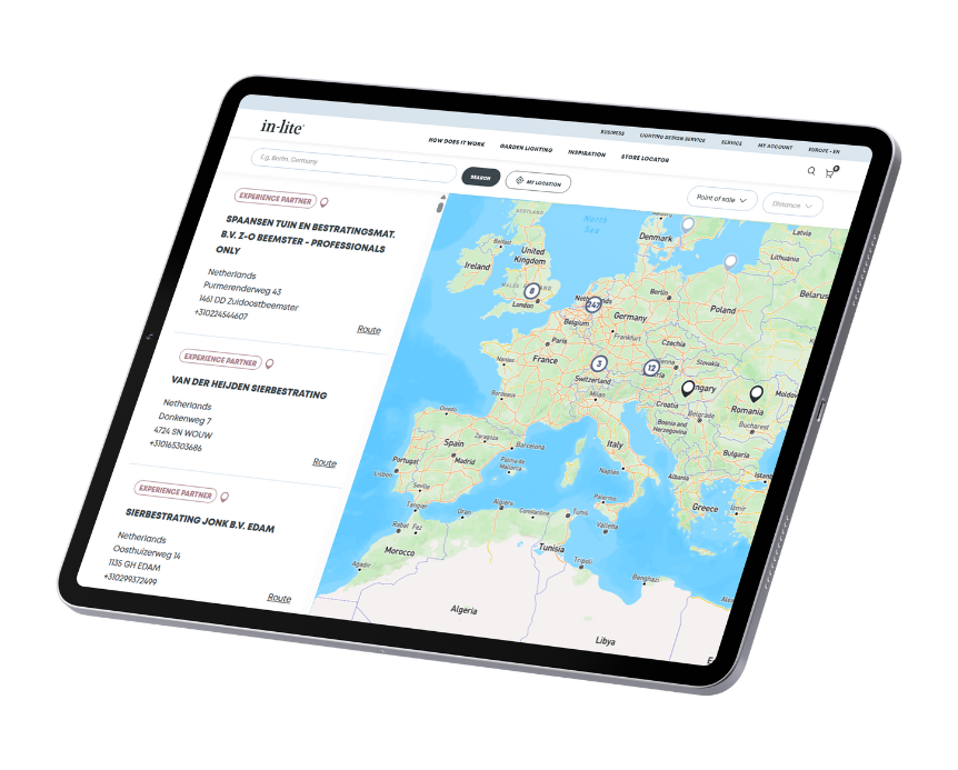 With in-lite outdoor lighting, you can create a functional and atmospheric garden perfectly tailored to your style and preferences. The system operates on low voltage and is easy to expand with additional fixtures, allowing your lighting to grow with your garden step by step. Looking for advice or help choosing the perfect lights? Feel free to get in touch with a dealer near you.
