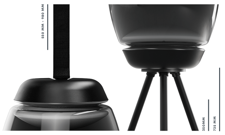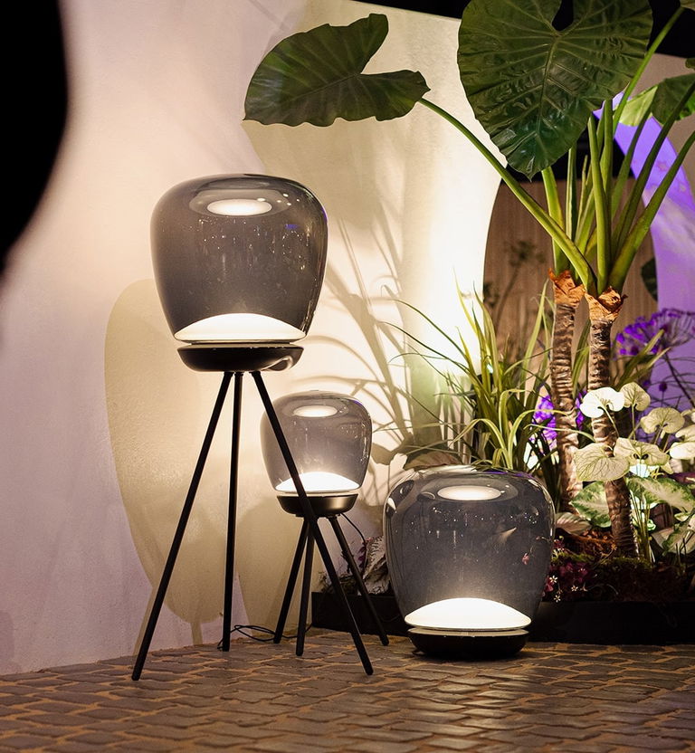 VOQUE LOW and VOQUE HIGH are elegant freestanding outdoor lamps made of dark, transparent glass. The tripod has a matte black look that makes it blend seamlessly with VOQUE. These stylish outdoor lights are ideal for illuminating special spots in your garden. They add an extra dimension to your outdoor space and are atmospheric, eye-catching outdoor bollards. Transform your veranda or covered space into a luxurious seating area and complete it with other VOQUE luminaires.