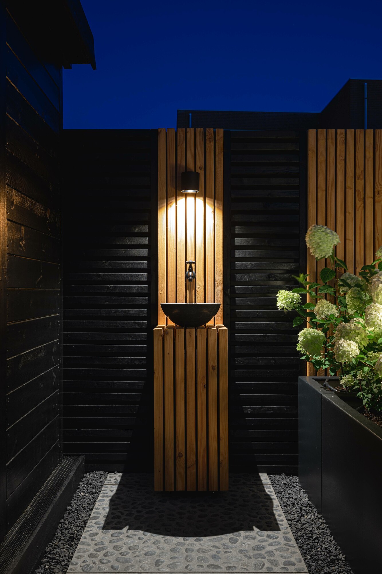 You can safely and easily install the outdoor wall lights with the in-lite 12 volt low voltage system. Just all by yourself. View all the benefits of in-lite lighting: