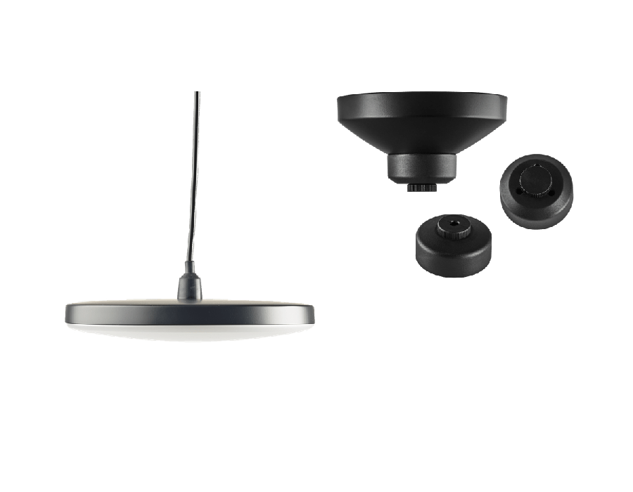 DISC PENDANT 100-230V est un luminaire suspendu attrayant qui s'installe seul ou en groupe avec DISC BASE ou DISC BASE TRIPLE.