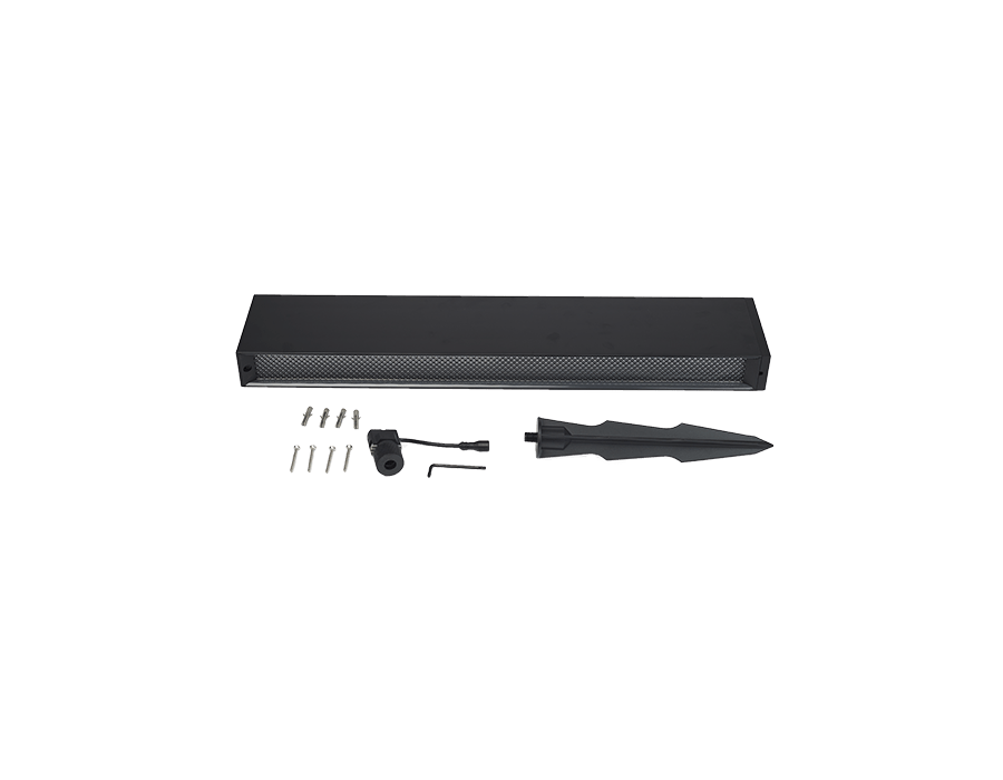 Montage avec vis sur surface dure ou avec piquet dans une surface molle (les deux inclus)