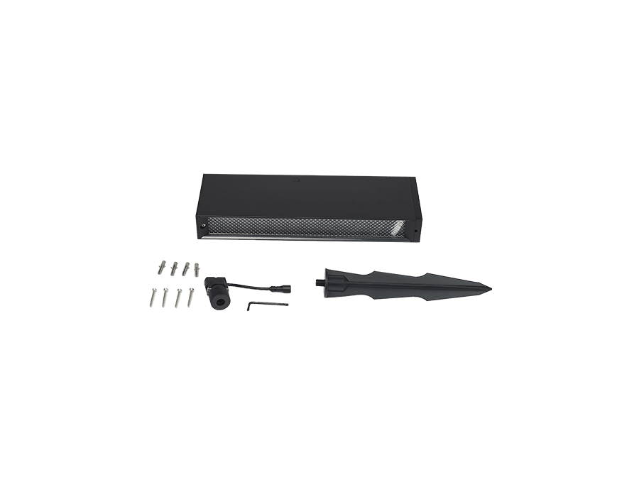 Montage avec vis sur surface dure ou avec piquet sur surface molle (les deux inclus)