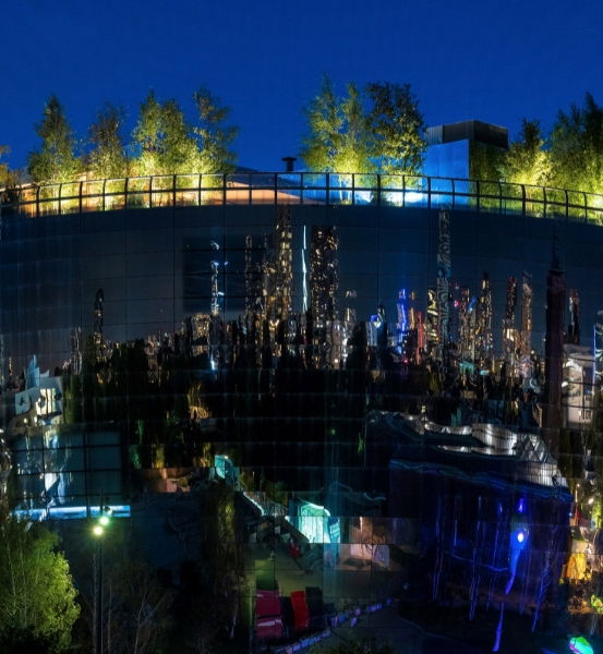 Bienvenue dans le jardin sur le toit du Depot Boijmans Van Beuningen, un lieu emblématique au cœur de Rotterdam. Pour ce projet exceptionnel, nous avons développé un plan d’éclairage entièrement pensé pour la flexibilité et l’expérience. Les arbres plus bas sont subtilement mis en valeur grâce aux MINI SCOPES, tandis que les plus grands bénéficient des SMART SCOPE TONES. Ceux-ci permettent d’adapter l’éclairage du blanc chaud à la couleur souhaitée – par exemple du rouge pour la Saint-Valentin ou les couleurs de l’entreprise lors d’événements. Qu’est-ce qui rend ce projet unique ? L’architecture spectaculaire et le mur-miroir qui reflète la skyline de Rotterdam dans toute sa splendeur.